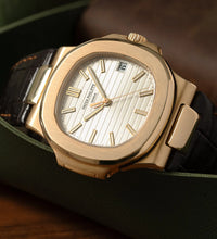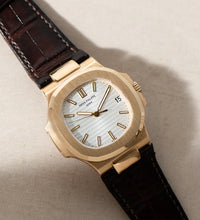 Patek Philippe Nautilus 18K Yellow Gold with brown leather strap watch